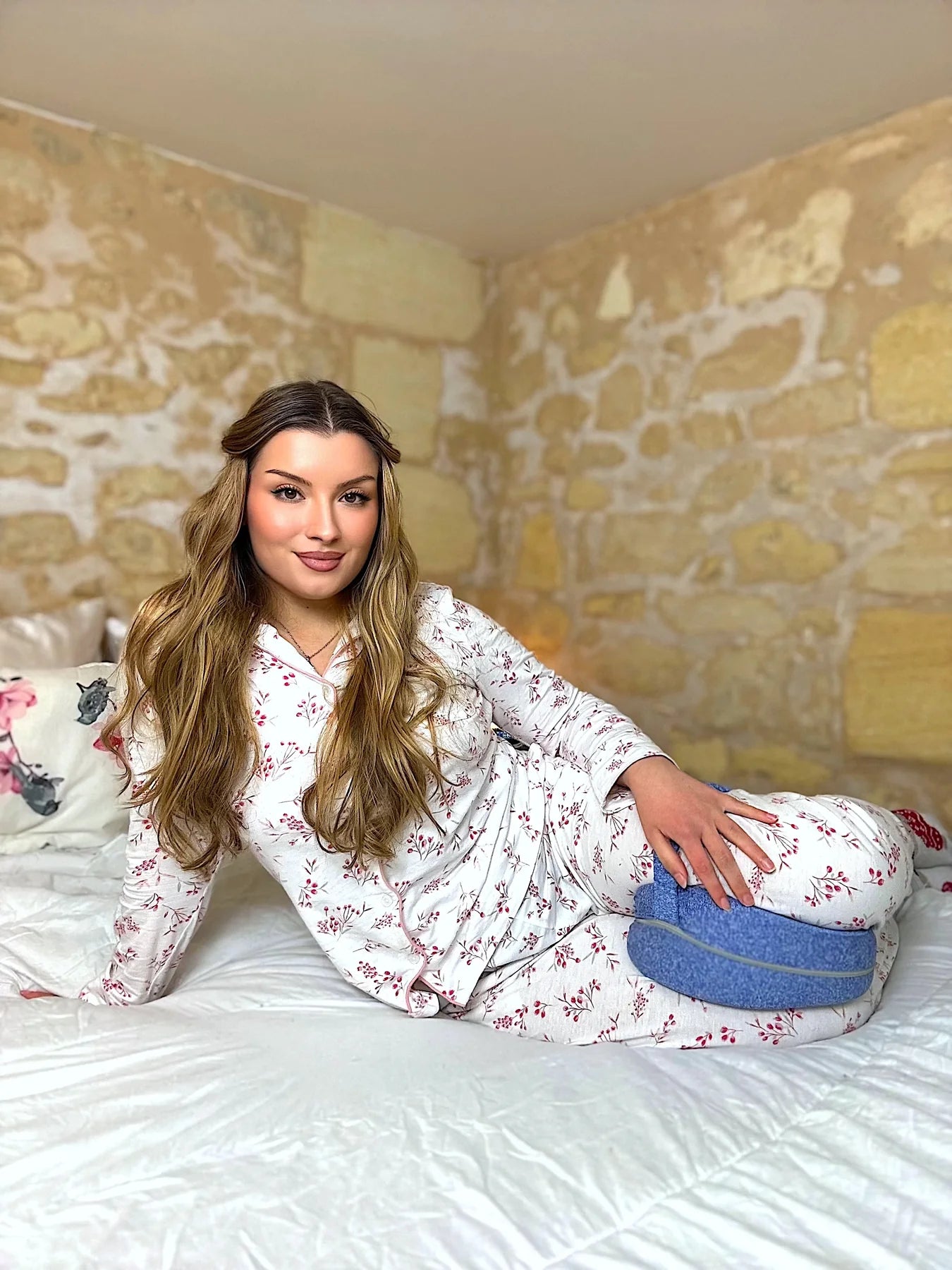The leg pillow is made of soft, high-quality memory foam, providing a comfortable and supportive feel.